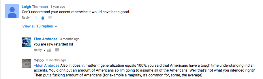 I was delighted to see how beautifully the community I built guarded me from the viewer who didn't understand my "Indian accent".